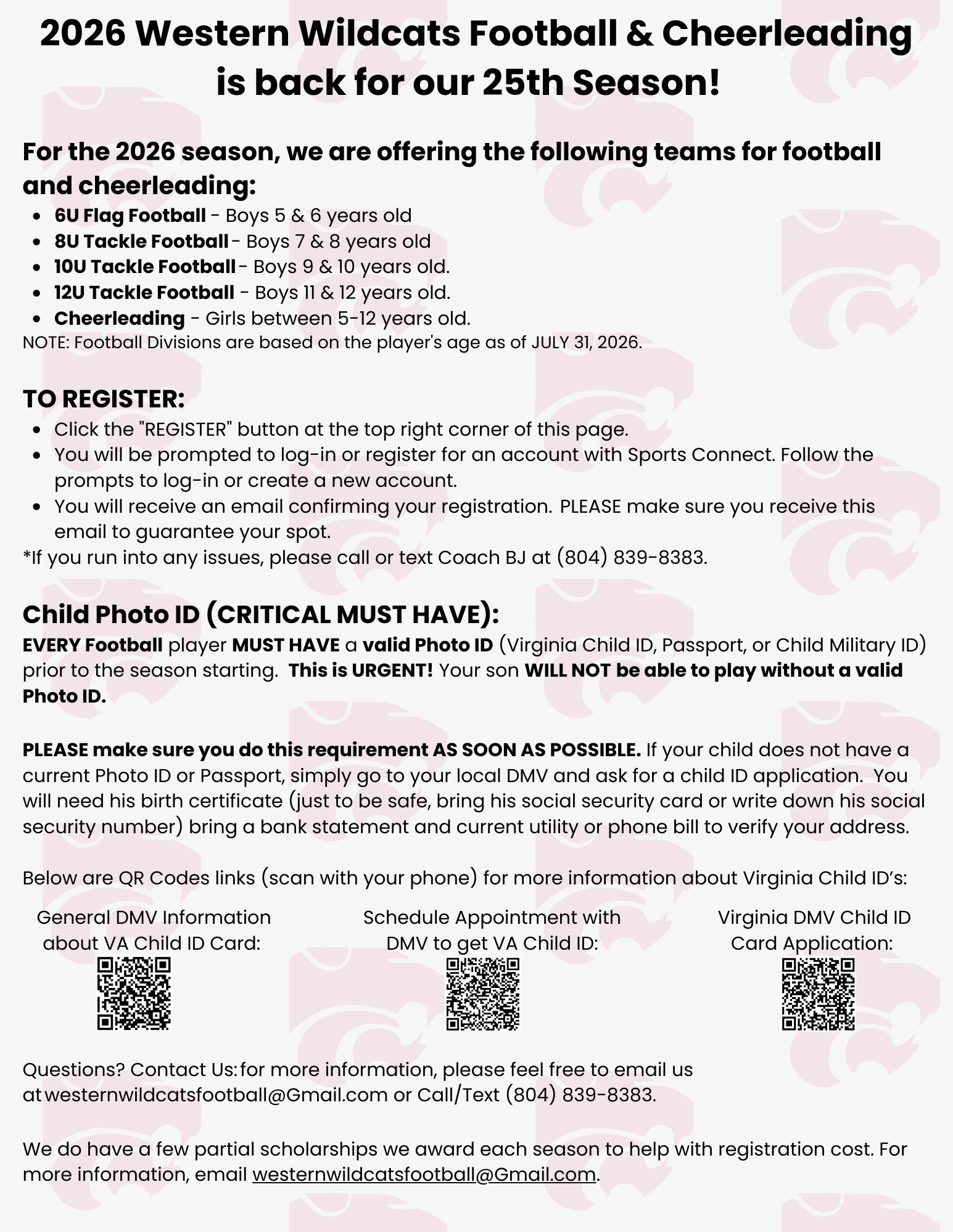 Western Wildcats Youth Football Association Quioccasin Middle School - 9400 Quioccasin Rd Richmond VA 23238 Henrico, Virginia 23238