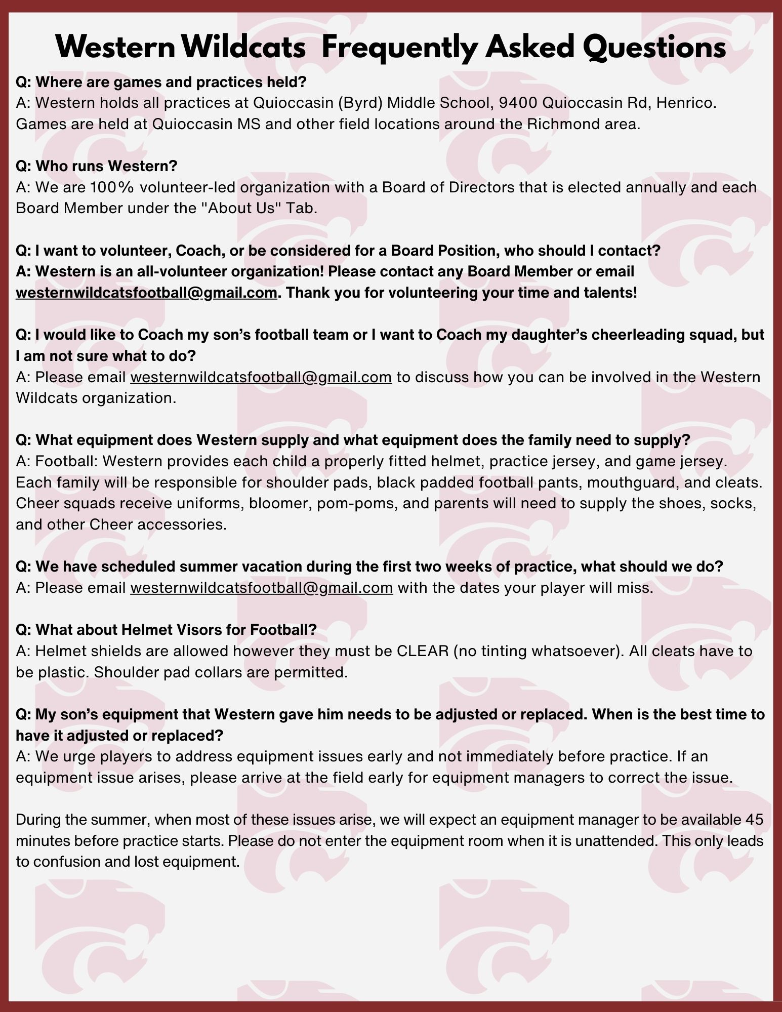Western Wildcats Youth Football Association Quioccasin Middle School - 9400 Quioccasin Rd Richmond VA 23238 Henrico, Virginia 23238